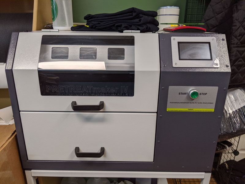 Fabric receives a special treatment that is applied directly to the material utilizing a machine that treats only the area to be printed on. The treatment prevents colors from soaking into the material and running, promotes adhesion for long lasting prints and enhance the final color of the print. The pre-treatment does not affect the original color or feel of the fabric in any way!